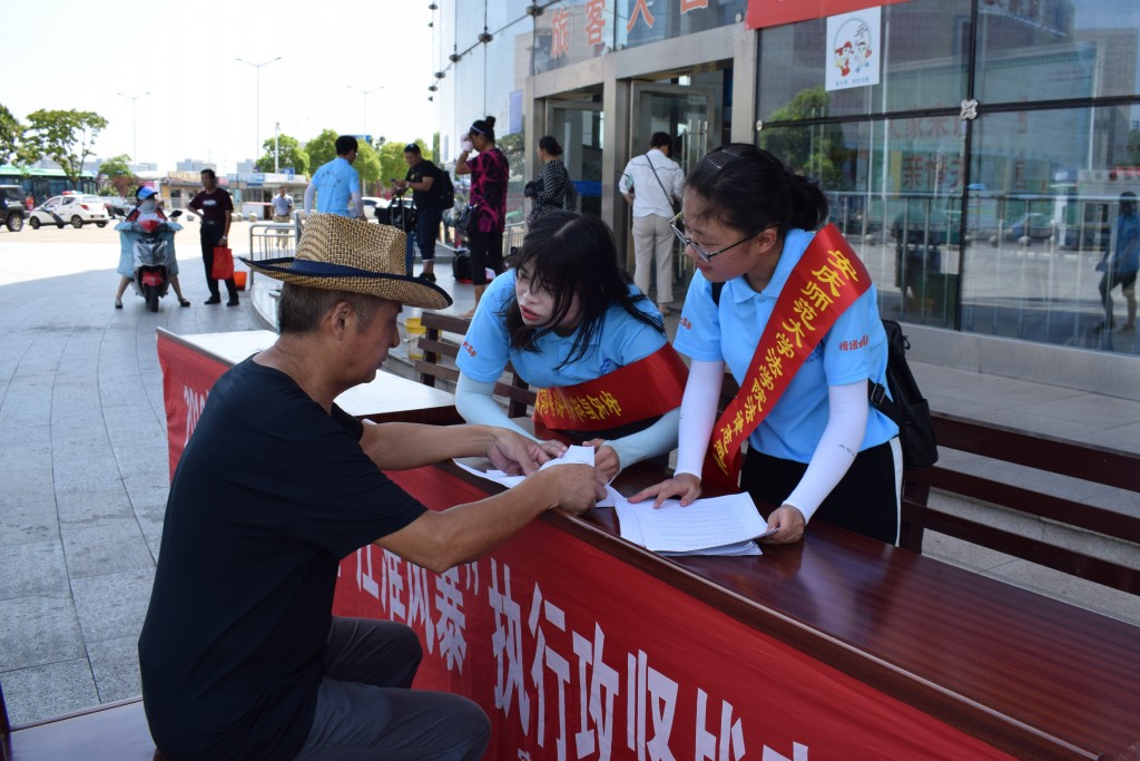 7月25日上午,太阳成集团tyc122cc“加强法治宣传 助力乡村振兴”法律志愿服务队和安庆市宜秀区法院的法律咨询台小组来到了客运中心站,开展2018年“江淮普法行”暨“江淮风暴”执行攻坚战的宣传活动。