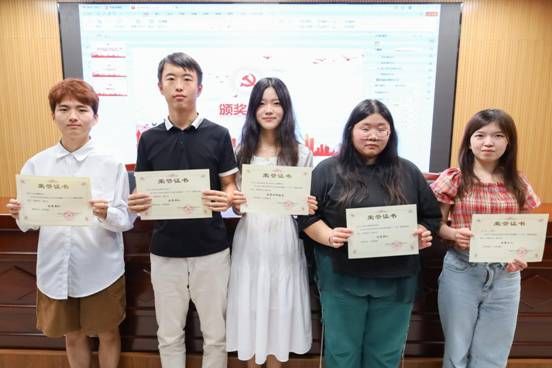 暑期“三下乡”实践分享环节,公司老师为获奖团队及优秀个人颁发奖状。两支获奖团队队长分别从“三下乡”具体情况介绍和实践团调研实况等方面进行分享汇报。