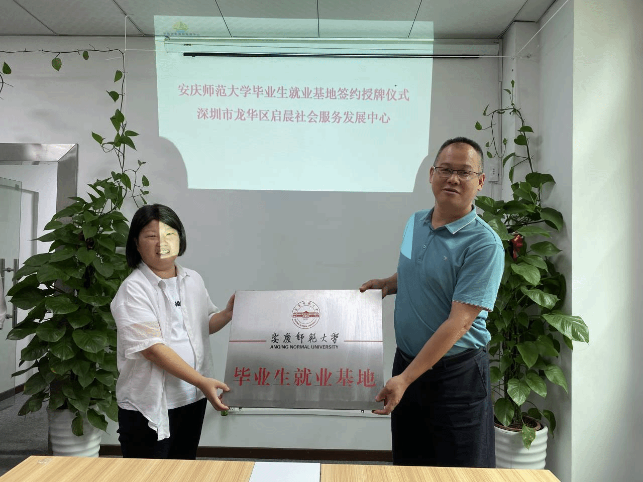 公司与深圳市龙华区启晨社会服务发展中心签订了毕业生就业基地建设合作协议,并举行毕业生就业基地授牌仪式。在深圳期间,朱留虎一行还与在深圳工作的近10人员工进行了座谈交流,深入了解社会工作专业的就业情况、员工取得的成就,员工代表也对母校专业人才培养和就业工作提出了许多宝贵意见。