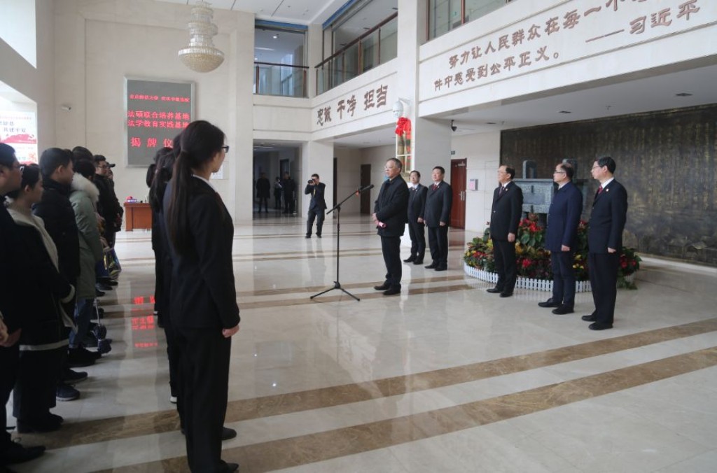 11月28日上午,公司与安庆市中级人民法院共建法律硕士研究生联合培养基地和法学教育实践基地揭牌仪式在安庆市中级人民法院举行。党委副书记、董事长闵永新和安庆市中级人民法公司党组书记、经理洪学农出席了仪式。安庆市中级人民法院专职委员会委员路昌琪,太阳成集团tyc122cc经理焦少林、党总支书记詹德全、2019级法律硕士研究生、在市中级人民法院实习的法学专业2016级员工和市中级人民法院部分干警等参加了仪式。仪式由安庆市中级人民法院副经理方向华主持。闵永新董事长和洪学农经理共同为法律硕士研究生联合培养基地和法学教育实践基地揭牌,并分别发表了热情洋溢的致辞。
