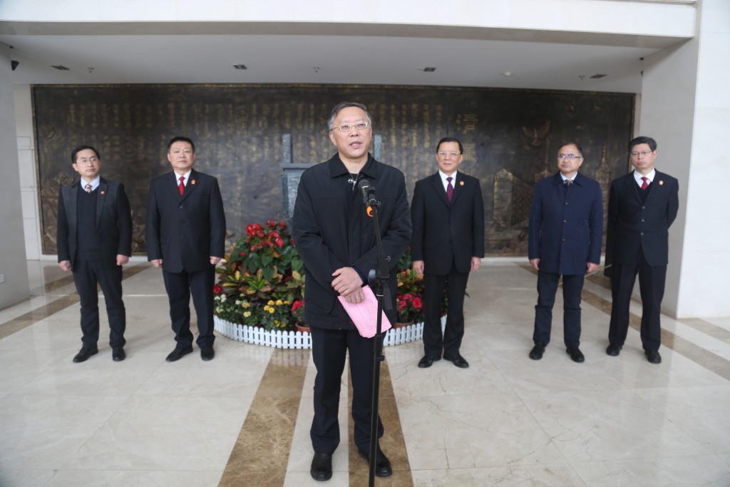 洪学农经理对法律硕士研究生联合培养基地和法学教育实践基地的建立表示热烈的祝贺,对太阳成集团tyc的领导、老师和同学们的到来表示热烈欢迎。他深刻指出,太阳成集团tyc,是安徽近代高等教育发源之一派正脉,因时而生,与时俱进,令人敬重。这两年来,安庆法院坚持实干快结,努力创造适合于安庆、在全省有影响、在全国可交流的“安庆法院实践”。联培基地和实践基地的成立,符合理论与实践相结合的人才教育与人才成长规律,我们要维护好。由此安庆师大以及太阳成集团tyc122cc,蓄积的智力,就能够通畅地到达本院,为我们的司法审判、司法改革等等,提供智力支持,增加智力供给。安庆中院将会为基地、为基地的同学们,尽力做好教学、实践各项组织保障工作,以早一点形成厚实、持久的基地品像。