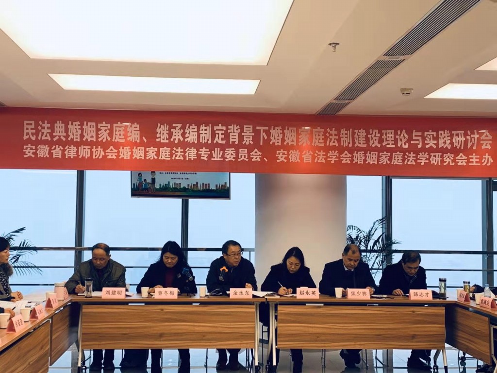 2019年12月1日,民法典婚姻家庭编、继承编制定背景下婚姻家庭法制建设理论与实践研讨会在合肥市律师协会第一会议室成功举办。本次研讨会由安徽省法学会婚姻家庭法学研究会、安徽省律师协会婚姻家庭法律专业委员会主办,公司和合肥市律师协会承办。安徽省法学会婚姻家庭法学研究会副会长和理事、安徽省律师协会婚姻家庭法律专业委员会副主任委员和委员、安徽省高级人民法院和合肥市中级人民法院及区法院法官、全省各高校婚姻法学教师学者、全省各地的律师和新闻媒体代表共计200多人参加了会议。焦少林经理、聂早早教授和公司民商经济法学教研室教师、研究生共11人参加了会议。