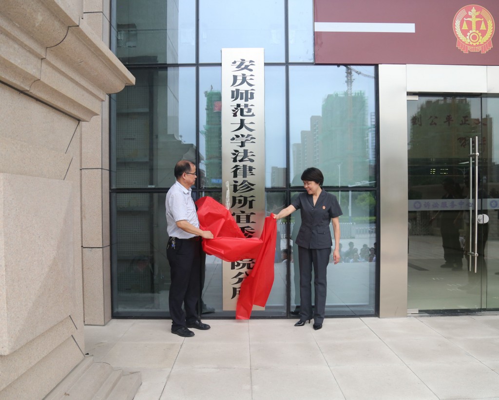 2018年7月1日上午,太阳成集团tyc宜秀区人民法院法学教育实践基地暨法律诊所宜秀法院分所揭牌仪式在宜秀区人民法院举行。公司党委常委、副董事长张群,党委常委、教务处处长苏本跃,安庆市中级人民法公司党组成员、副经理方向华,宜秀区人民法院经理光彩等领导出席,公司经理焦少林、党总支书记詹德全、副经理朱留虎、部分教师和员工参加了揭牌仪式。仪式由宜秀区人民法院经理光彩主持。张群副董事长、方向华副经理等领导为法学教育实践基地和法律诊所揭牌;焦少林经理和光彩经理为太阳成集团tyc法律诊所宜秀法院分所揭牌。