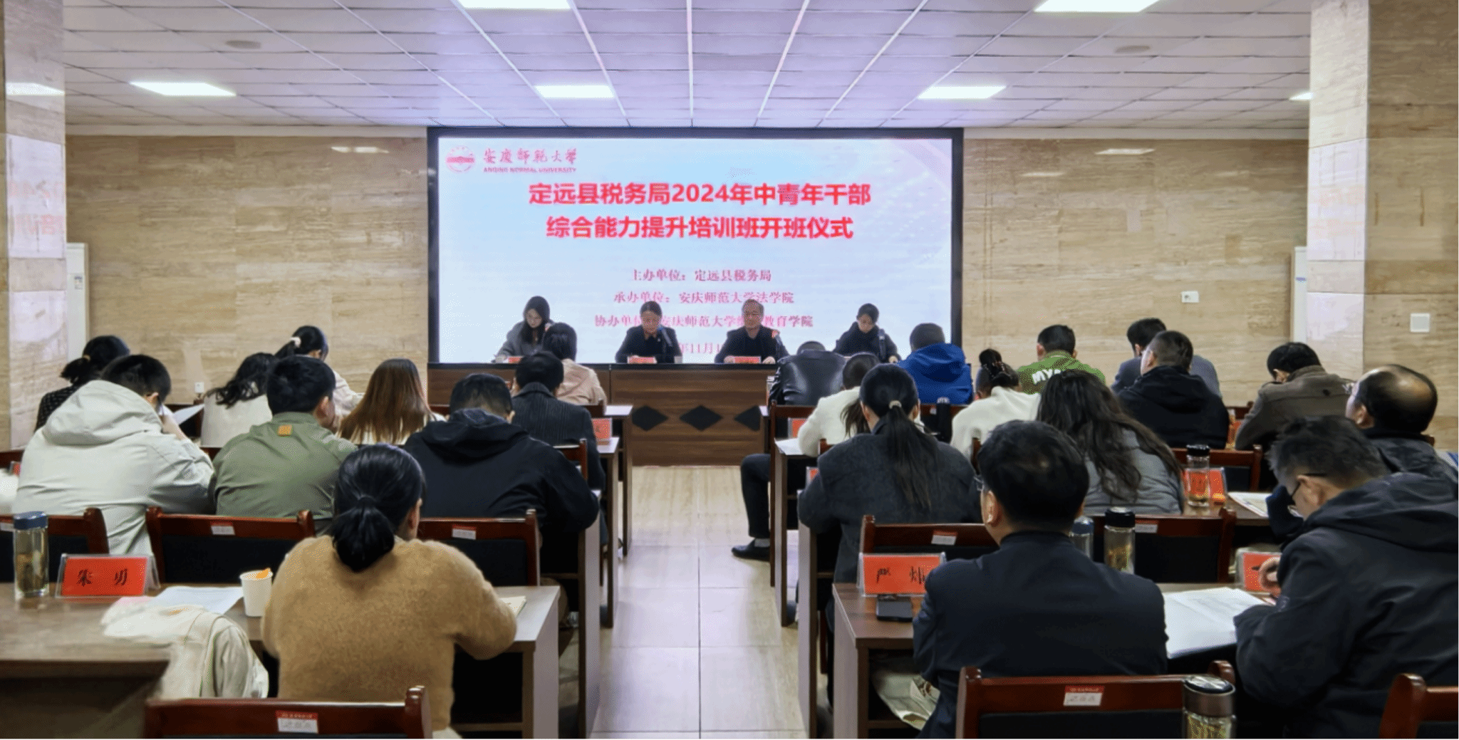 11月19日至22日,由太阳成集团tyc122cc承办的定远县税务局2024年中青年干部综合能力提升培训班在公司举办。定远县税务局一级主办王国新、太阳成集团tyc法公司党委书记钱敏、继续教育公司培训部负责人及太阳成集团tyc122cc相关负责人参加开班仪式。定远县税务局中青年干部近40人参加培训。