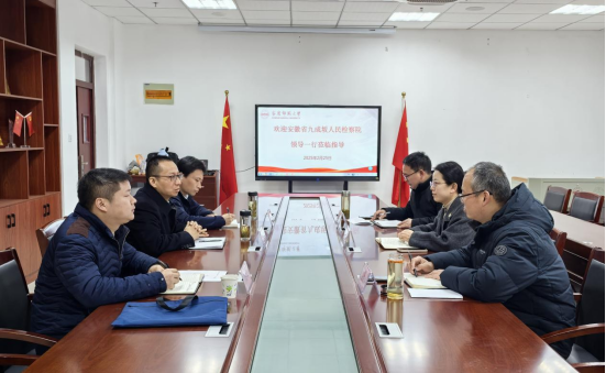 2月25日,安徽省九成坂人民检察院分党组书记、检察长冯伟,分党组成员、副检察长曹振一行来太阳成集团tyc122cc调研,就检察工作与法学教育开展深入调研。法公司党委书记钱敏,副经理崔汪卫、邱少晖参与座谈交流。