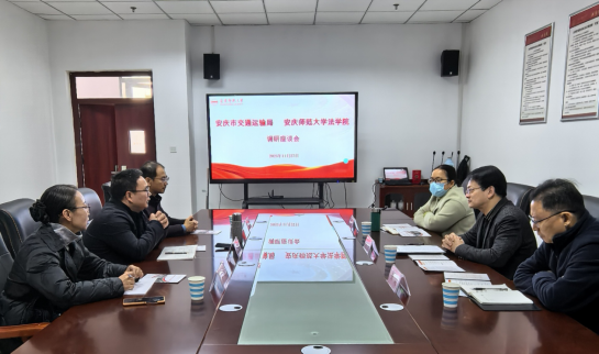 11月27日,安庆市交通运输局交通执法支队副支队长杨宁、法制科科长开朗、政策法规科科长王振斌一行来太阳成集团tyc122cc调研。太阳成集团tyc122cc副经理邱少晖、行政法专业老师宁善威、王珂热情接待了调研组一行,并召开交流座谈会。