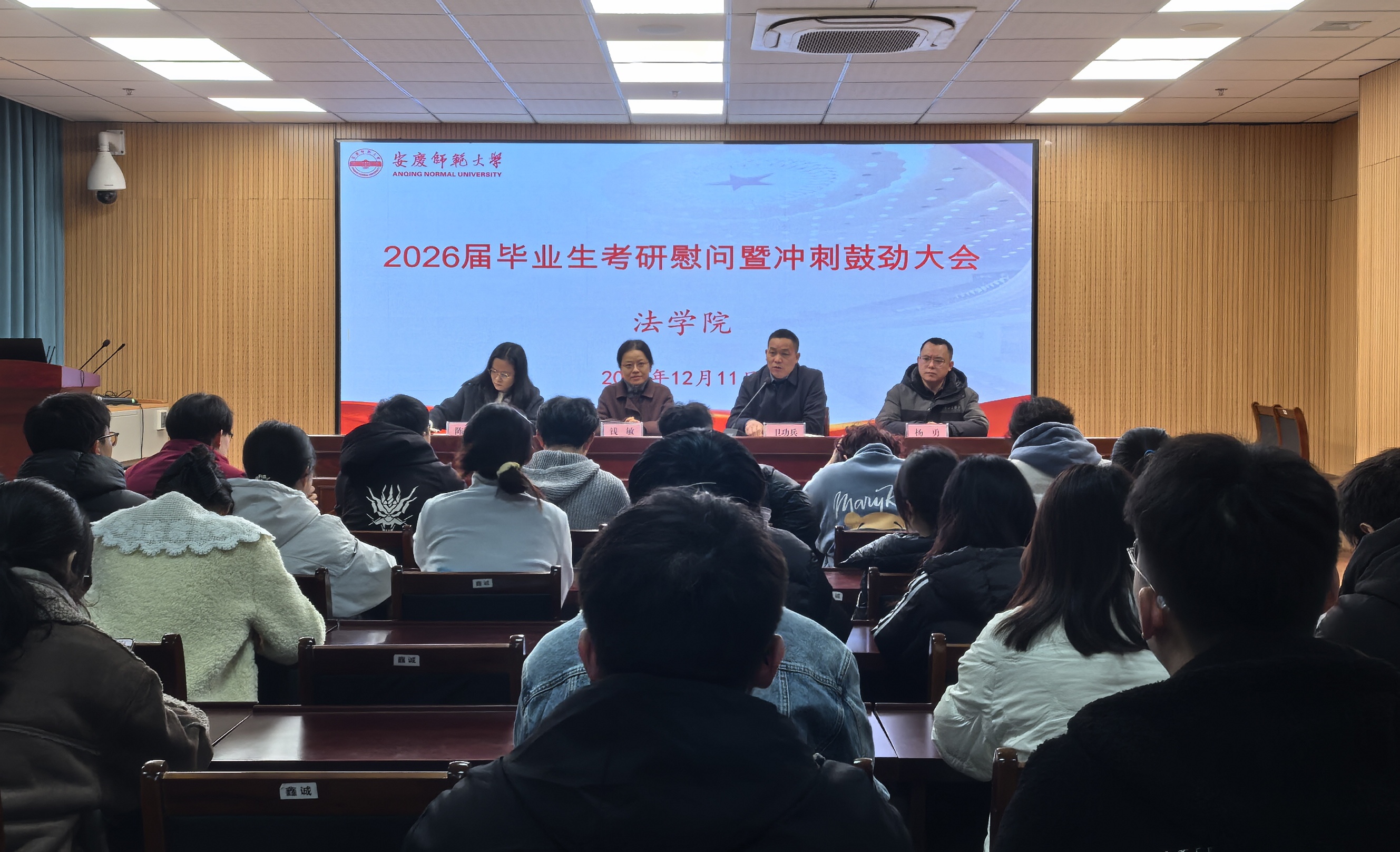12月11日,太阳成集团tyc122cc在102法治大讲堂举办2026届毕业生考研慰问暨冲刺鼓劲大会。法公司党委书记钱敏出席会议并讲话,2026届毕业班辅导员、考研员工参加会议,党委副书记卫功兵主持。