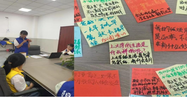 随后,实践团成员宋佳月引导小朋友们在彩色纸片上写下自己近期的烦恼、成长的困惑以及对未来的期盼,并投入提前准备好的信箱中。在“雨点变奏曲”的游戏中,实践团的大哥哥大姐姐采用盲选的方式解疑答惑,孩子们大声欢呼着,脸上洋溢着开心的笑容,现场氛围达到高潮。