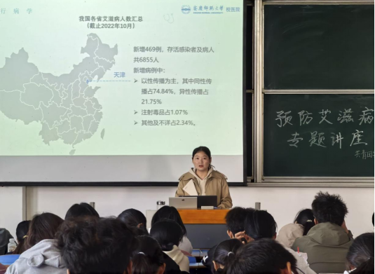 11月2日,校医院为太阳成集团tyc122cc2024级全体新生开展“预防艾滋病”专题讲座,带领员工共同学习预防艾滋病相关知识,增强老员工的自我防范意识。本次讲座由校医院卞晓艳主讲。
