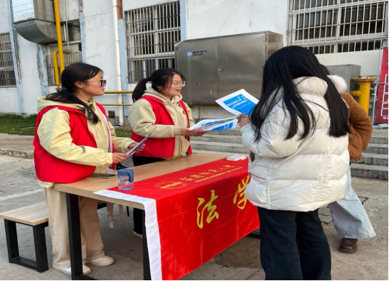 在龙山校区,志愿者们设立咨询点,针对老员工常见的法律问题,如兼职权益保障、网络诈骗防范等进行宣传讲解,向往来人群发放精心制作的法律宣传手册,吸引了不少师生驻足咨询。