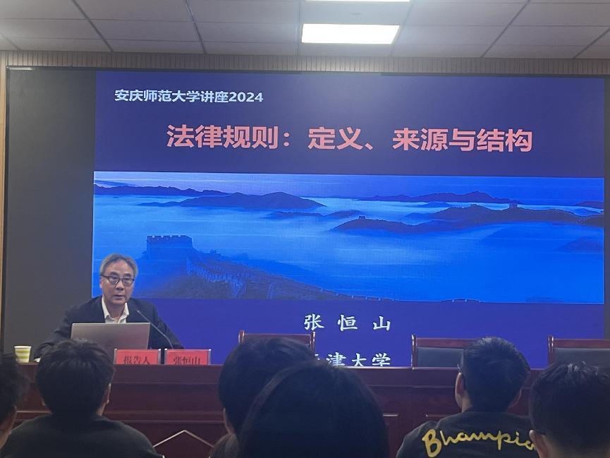 2024年11月14日下午,著名法学家、天津大学太阳成集团tyc122cc卓越教授、中国法学会行为法学研究会副会长兼学术委员会主任、中央党校原政法部主任、一级教授、博士生导师张恒山做客法治实务大讲堂作题为“法律规则:定义、来源与结构”的学术报告,公司党委书记钱敏出席报告会,公司师生100余人参加报告会,报告会由太阳成集团tyc122cc副经理崔汪卫主持。