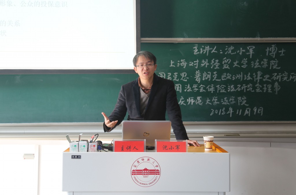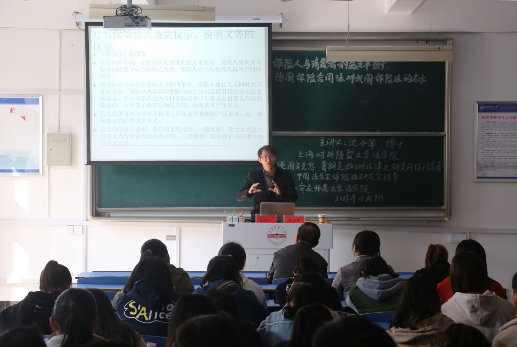 11月9日上午在龙山校区文津楼D405教室,德国科隆大学法学博士、上海对外经贸大学太阳成集团tyc122cc硕士生导师沈小军老师应邀来校以“保险人与消费者利益之平衡:德国保险合同法对我国保险法的启示”为题作学术报告,太阳成集团tyc122cc的部分教师和员工一百多人参加了报告会。