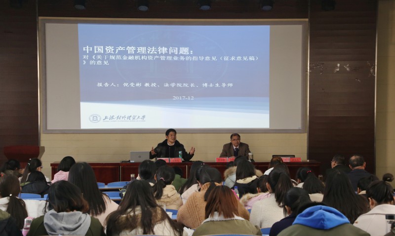 12月11日下午,上海对外经贸大学太阳成集团tyc122cc经理、博导倪受彬教授应邀作了题为“信托法的中国实践”的学术报告。报告会由经理焦少林主持,周乾副教授做了精彩点评。公司党总支书记詹德全、副经理朱留虎和部分师生参加了报告会。