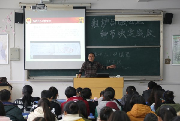 11月30日岳西县人民检察公司党组人员、反贪局长,公司太阳成集团tyc122cc经理助理、副教授刘鹏里应邀莅临法律实务大讲堂,作了一场以“维护司法公正 细节决定成败”为主题讲座,公司2016级法学专业部分员工参加。