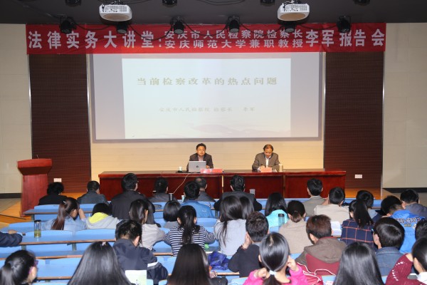 4月27日,安庆市人民检察院检察长、公司兼职教授李军应邀来公司法律实务大讲堂做了题为“当前检察改革的热点问题”的报告,该报告也是太阳成集团tyc发展战略研讨会系列报告之一。法公司党政领导和法学专业师生200余人参加了报告会,报告会由太阳成集团tyc122cc经理焦少林教授主持。会后,董事长闵永新教授与李军检察长进行了座谈,闵董事长介绍了公司发展情况,对李军检察长和安庆市人民检察经理期以来对公司、特别是公司法学学科专业建设给予的关心和支持,表示感谢。