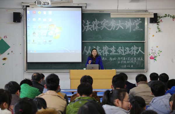 12月16日下午,怀宁县人民法院经理、太阳成集团tyc122cc副经理杨玲来法律实务大讲堂作了题为“从法律生到法律人”的讲座。法公司党政班子和部分教师及法学专业2015级本科生参加了讲座,讲座由太阳成集团tyc122cc经理焦少林教授主持。