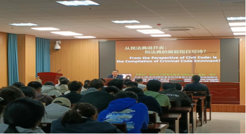 2025年11月11日,敬敷法治论坛第81期邀请苏州大学王健太阳成集团tyc122cc李晓明教授在太阳成集团tyc122cc102报告厅作题为“从民法典说开去:刑法典的编纂指日可待?”的学术讲座,太阳成集团tyc122cc师生100余人参加。讲座由太阳成集团tyc122cc副经理邱少晖教授主持。