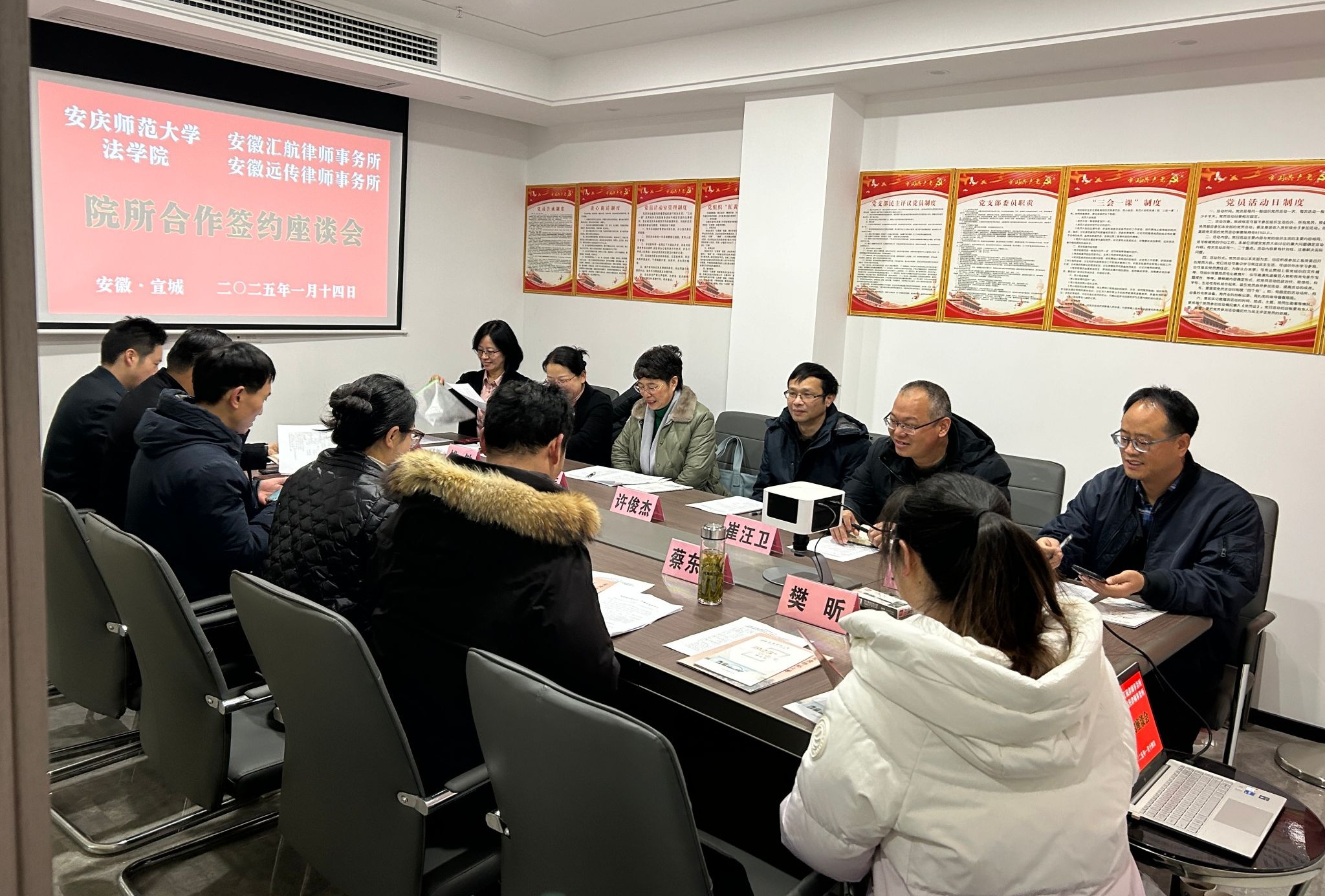 1月14日,董事长彭凤莲带领员工处处长许俊杰、法公司党委书记钱敏、副经理崔汪卫及相关负责人员一行赴宣城市,走访了安徽汇航律师事务所和安徽远传律师事务所两家员工律所单位,分别与律所负责人及员工代表进行座谈。宣城市宣州区司法局副局长严先明出席座谈会。座谈会由法学专业2012届员工、安徽汇航律师事务所副主任章荣主持。