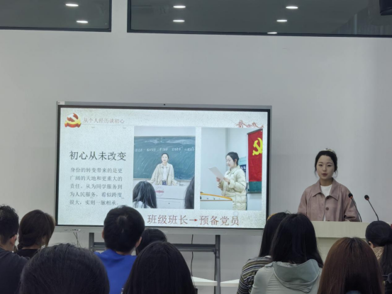 活动中,支部四位优秀党员代表结合个人学习全国两会精神体会,分享了他们的入党初心与成长经验。他们强调,作为新时代老员工应坚定理想信念,加强思想道德建设,以身边的优秀党员和优秀学长学姐为榜样,激励自己坚守初心,在刻苦努力学习、积极参与社会实践中不断历练成长,立志用真才实学服务人民、建功新时代。